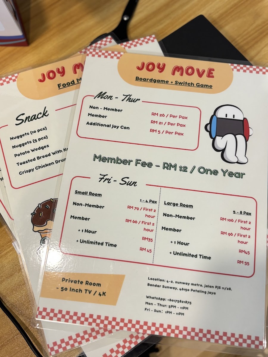Welcome to Joy Move Boardgame | Switch Game Cafe, a vibrant hub located in Bandar Sunway, Petaling Jaya, where fun meets relaxation. This spacious cafe offers an extensive selection of both party board games and popular Nintendo Switch titles, making it a perfect destination for game enthusiasts and casual players alike.